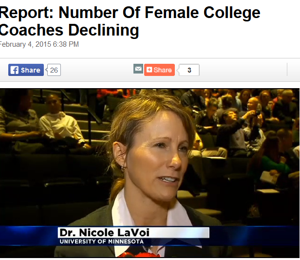 December 19, 2013. LaVoi’s work on women in college coaching is featured in exclusive USA Today column by Christine Brennan Report: Colleges doing poorly at hiring women coaches. Other media outlets including The Chronicle of Higher Education, Inside Higher Ed, Athletic Business, espnW, and the USOC Coaching Education Newsletter among many others pick up the story.